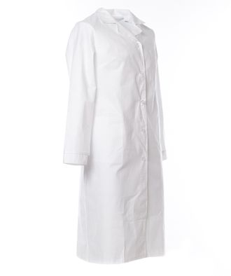 Халат мужской "ИТР" с отложным воротником имеет застежку на пуговицы, манжеты также на пуговицах. Снабжен нагрудным накладным карманом и двумя нижними накладными карманами. Хлястик на пуговицах сзади для регулировки объема.