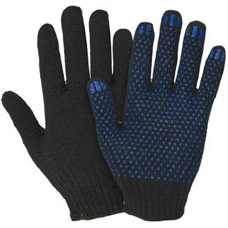 Полушерстяные рабочие перчатки хб с ПВХ, чёрные, 7 класс, вес 65 г. Упаковка 10 пар.